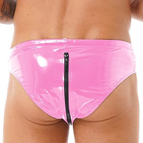• Mens Drawstring Low Waist Zipper Briefs Wet Look Patent Leather Underpants Underwear