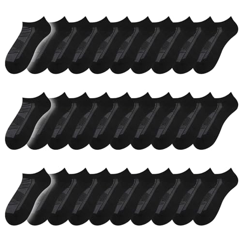 Fabric type: PolyesterOrigin: ImportedPattern: Striped【Wash-free for three weeks】- EverKnits 30-pack of ankle socks is a lifesaver for busy lifestyles! The sheer quantity means you' ll always have fresh pairs on hand, eliminating daily laundry hassles. Designed as a bulk, non-individually wrapped set, they' re easy to store and grab—perfect for tossing into gym bags, drawers, or travel luggage.【Comfortable Fit for All-Day Wear】- Featuring flat toe seams and a flexible, elastic design, these lightweight socks fit men's shoe sizes 8–12 and mens socks size 10-13, ensuring a snug yet comfortable fit.【Lightweight, breathable and comfortable】- polyester and spandex. Ankle socks are made thinner to provide breathability and help keep your foot's temperature regulated during warmer months. which brings them ideal softness, breathability and durability, ensuring your cozy wearing and long-term use; Washing by hand or machine with cold water, not easy to shrink or deform.【retro and easy matching】- Mens ankle socks are designed with simple and classic solid colors, making them easy to match with different clothes without destroying your overall dressing style; Low cut design brings the men's socks more flexibility to go with sneakers, boots, running shoes, flat shoes and other styles of shoes.【Practical gift choices】- EverKnits thin breathable ankle socks are elastic and fit most men and teenagers, can be applied as practical and thoughtful gifts for your brothers, lover, father, friends or other family members; They are also nice gift choices for your team, charity event, party, competition activities and so on. Perfect for everyday use. superior materials and excellent craftsmanship ensure long-lasting durability.