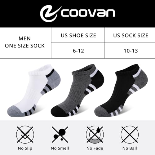 COOVAN Mens 12 Pack Athletic Ankle Socks, Mens Cushioned pleasant Low Cut Sock 12 Pairs