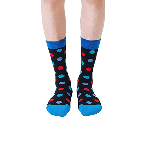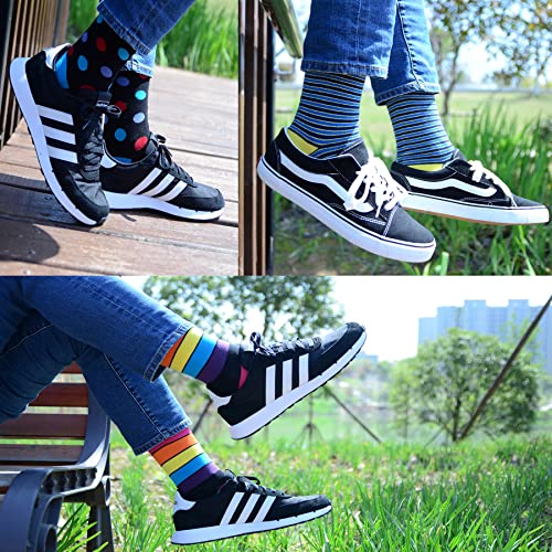 Fabric type: Elastic,Polyester,Cotton,Spandex,MeshCare instructions: Machine WashOrigin: ImportedPattern: StripedMAXIMUIM COMFORT & DURABILITY: These mens dress socks are made of 80% cotton 10% spandex and 10% polyester to keep elasticity durable and softness, high quality materials offering breathable , sweat-resistant comfort ,our patterned dress socks are solid , lightweight and comfortable for all day wear. Keep your feet cool and dry all day long.COMFORTABLE ELASTIC CLOSURE: Adding to the comfort of everyday wear, The Mens dress socks offer a soft mesh design top. It won't be too tight to cause blood blockage, nor too loose to cause sliding down, making sure you are comfortable and decent. These men's striped dress socks are super comfortable, extremely breathable and are awesome socks for guys.ERSATILE: Pair your socks with anything from boots to loafers. They will look great with suits, jeans, khakis and corduroys. You can stylishly go from the office to the party with these Colorful Funny Novelty Crew socks. A variety of 6 unique designs and colors provide you with several options that look great with any ensemble.SUPERIOR FIT & FEEL: Different sizes for superior fit. Not your average one size fits all! The fun socks for men have three different sizes, Sock Size: 9-11for Mens Shoe Size 6-9( Womens Shoe Size 5-8) ;Sock Size:10-13 for Mens Shoe Size:9-12 (Womens Shoe Size 8.5-11);Sock Size:13-15 for mens Shoe Size:12-15GREAT GIFT & 100% SATISFACTION GUARANTEED: 6 pairs colorful dress socks for men assorted in nice box, Give the special man in your life something he can never have too much of. Our high quality mens fashion socks are the perfect for every man or boy. We are so confident that you will love our colorful patterned designer socks and mens black dress socks. If not, we will offer free replacement. No questions asked. Perfect for everyday use. High quality materials and excellent craftsmanship ensure long-lasting durability.