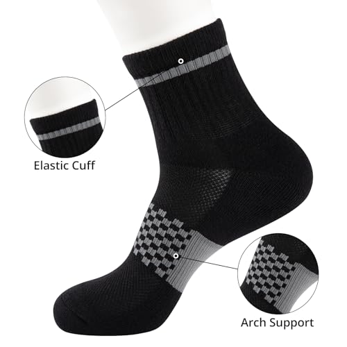 COOVAN Mens Atheltic Quarter Socks Cotton Thick Cushioned Moisture Wicking Running Sports Work Socks(8 Pairs)