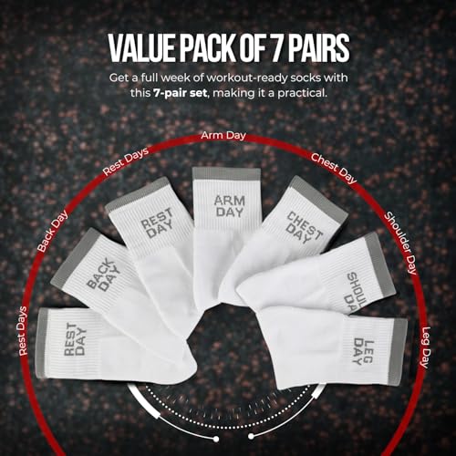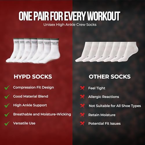 Fabric type: 70% Cotton 22% Spandex 8% ElastaneCare instructions: Hand Wash OnlyOrigin: ImportedPattern: Letter PrintAll-Day Comfort & Breathability : Made from cotton blend, these high ankle crew socks offer superior softness, breathability, and moisture-wicking performance to keep feet dry and comfortable all day longNon-Slip Athletic Grip : Designed with targeted cushioning and a secure grip, these socks stay in place during intense workouts, runs, or casual wear—no sliding or bunchingVersatile Unisex Fit : Crafted to fit both men and women, these crew socks offer a snug yet flexible fit ideal for gym sessions, sports, walking, or everyday activitiesDurable & Long-Lasting : Reinforced heel and toe areas enhance durability, making them perfect for daily wear and repeated washing without losing shape or comfort7-Pair Value Pack : Includes 7 pairs of sophisticated, easy-to-match socks—an ideal set for active lifestyles, travel, or stocking up your drawer with everyday essentials. Perfect for everyday use. superior materials and excellent craftsmanship ensure long-lasting durability.