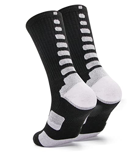Mens Basketball Socks Athletic Crew Soccer Socks Youth Boy 4 Pack Balck 10-12