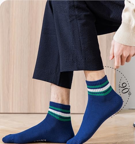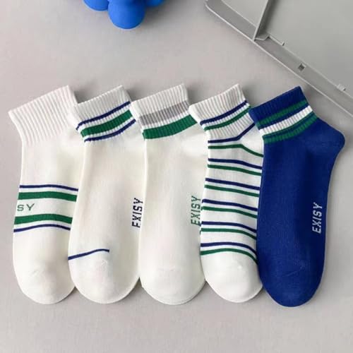 More information about 5 Pairs of Men's Ankle Socks, Summer Thin Breathable Cotton Socks, Trendy Striped Sports Socks, White & Blue