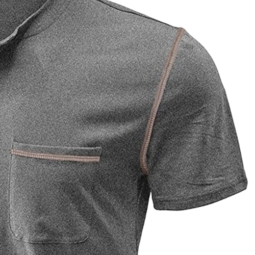 Men Quarter Button Henry Shirts Front Pocket T Shirt for Casual Daily Wear Summer traditional Comfy Pullover Tops
