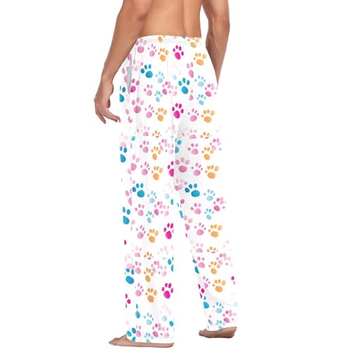 trending ! Men's Cute Paw Prints Pajama Pants with Pockets - Straight Fit Cotton Sleep Bottoms for Lounge & Nightwear#160