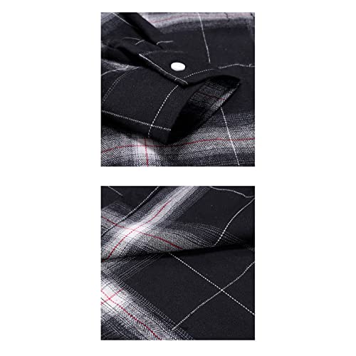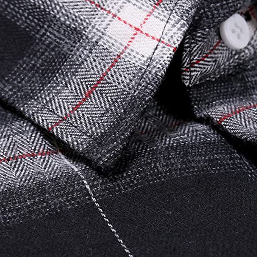Men's Long Sleeve Fashion Plaid Shirt Regular Flannel Plaid Button Shirt Slim-Fit Work with Pocket Shirts