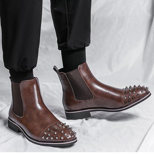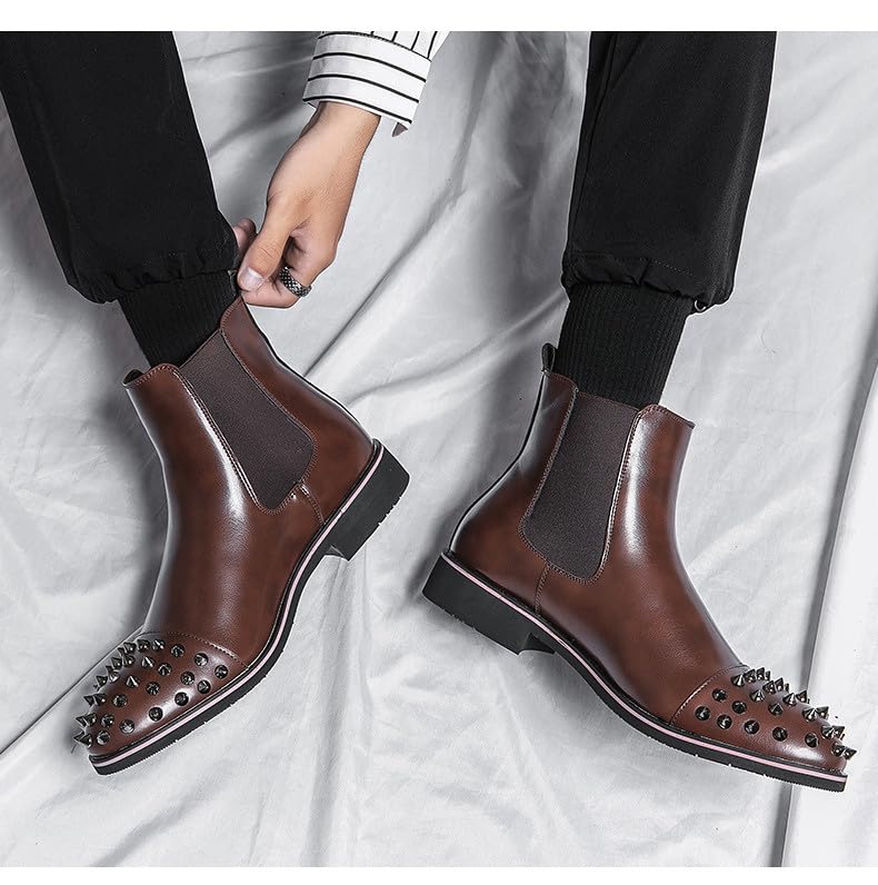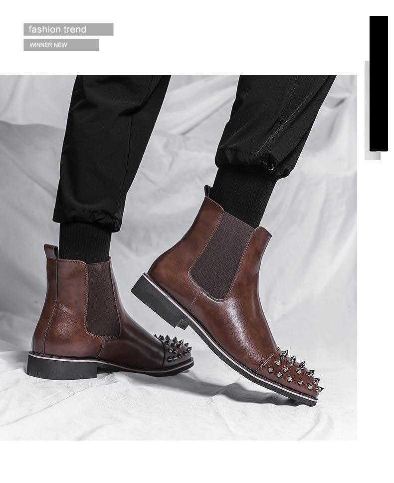 Why Choose Santimon Men’s Studded Cap-Toe Leather Chelsea Boots Bold Spike-Embellished Slip-On Ankle Boots for Party, Stage, or Fashion, Black/Brown?