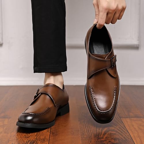 trending ! Men's Trendy Cowhide Chunky Heels Business Loafers with Monk Buckle Pointed Toe Comfort Slip On Dress Oxford Shoes for Casual Wedding Formal Shoes