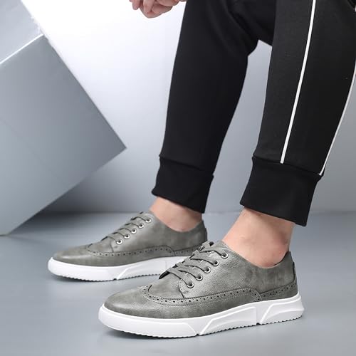Men's Leather Brogue Wingtip Casual Oxford Shoes Fashion Non-Slip Round Head lace up Platform Dress Sneakers Casual pleasant Office Work Shoes
