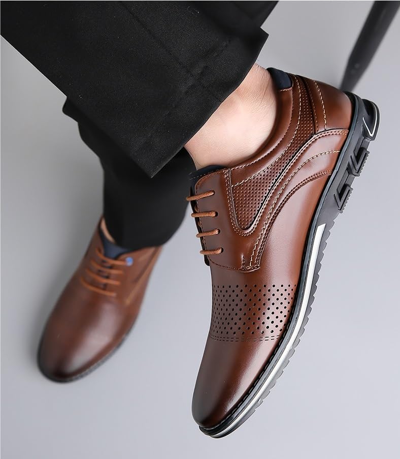 Sole material: RubberOuter material: LeatherInner material: LeatherClosure type: No-closurePlease carefully measure your feet and check our size chart in the product images. The size chart can help you pick the best fit for your feet. If you have wide feet or high instep, order a size upExperience long-lasting comfort and superior cushioning with our premium microfiber upper. These men’s dress shoes boast exceptional breathability and flexibility, ensuring superior qualityOur cushioned insole not only protects your feet from impact on hard surfaces but also enhances durability. These casual business shoes for men offer excellent arch support and cradles the natural contours of your foot, providing unmatched comfortDesigned with ergonomics in mind, this pair of men’s pleasant leather walking shoes features a lightweight non-slip rubber sole that effectively relieves foot fatigue,It's perfect for extended periods of walking, ensuring utmost pleasureEmbrace both style and versatility with these oxford orthopedic dress shoes for men. Whether you're treating yourself or looking for a gift, they are an excellent choice that effortlessly matches any outfit Perfect for everyday use. supreme materials and excellent craftsmanship ensure long-lasting durability.