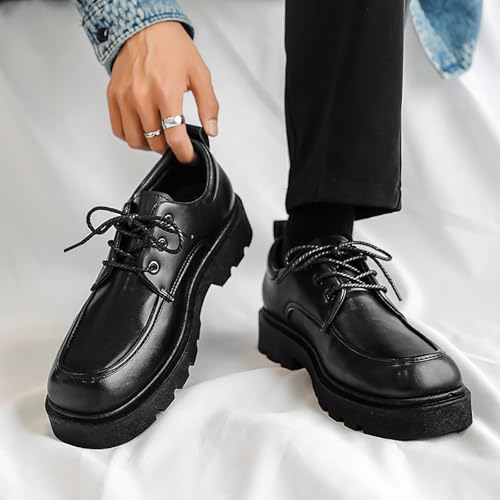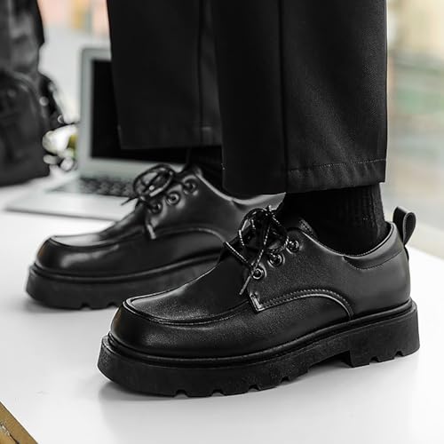 trending ! Men's Leather Chunky Platform Oxfords retro Square Toe Comfort Lace Up Block Heel Anti-Slip Lug Sole Business Derby Shoes Casual Work Formal Dress Wedding Prom Work Shoes