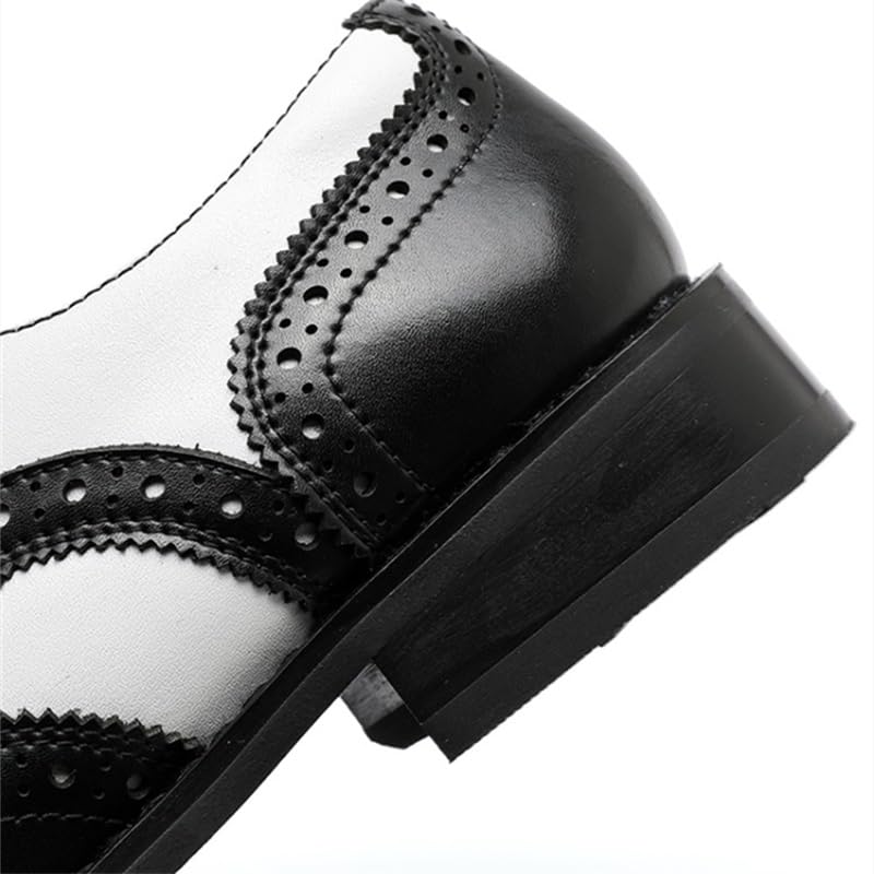 • Leather fabric: The carefully selected="selected" leather of these men leather shoes, crafted from premium materials that ensure durability and a refined look. The black and white splicing design adds a sleek flair, making these shoes suitable for both formal and casual occasions