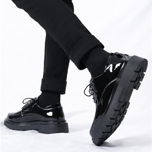 Men's Patent Leather Platform Dress Derby Shoes Round Toe Lace Up Non-Slip Cutout Oxford Shoes Casual Business Work Office Formal Shoes
