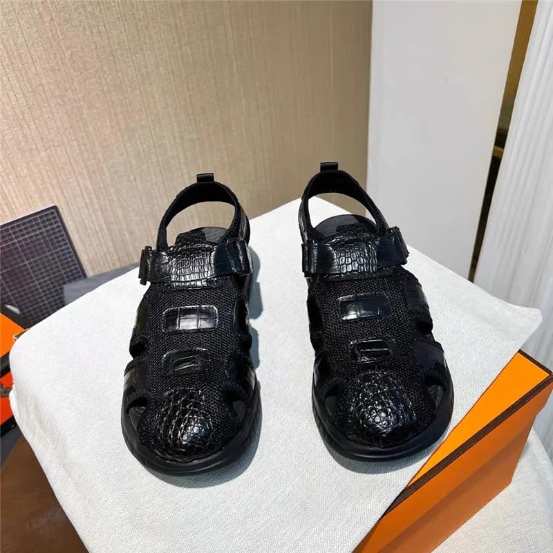 Why Choose Authentic Exotic Crocodile Skin Men's Casual Black Covered-toe Sandals Genuine Real True Alligator Leather Male Leisure Flats?