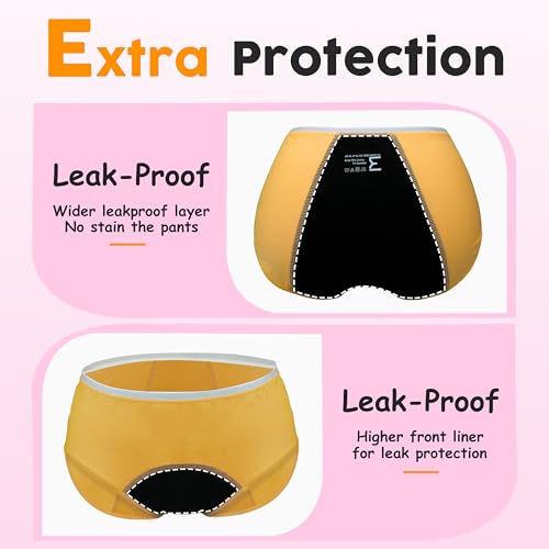 • 【MULTIPLE SIZES & EASY MAINTENANCE】Please find the menstrual underwear in right size for you inside the size chart. Hand wash and air dry is better for extending the lifespan of the leakproof underwear. Please don't put them on tumble dryer that will damage the lining.